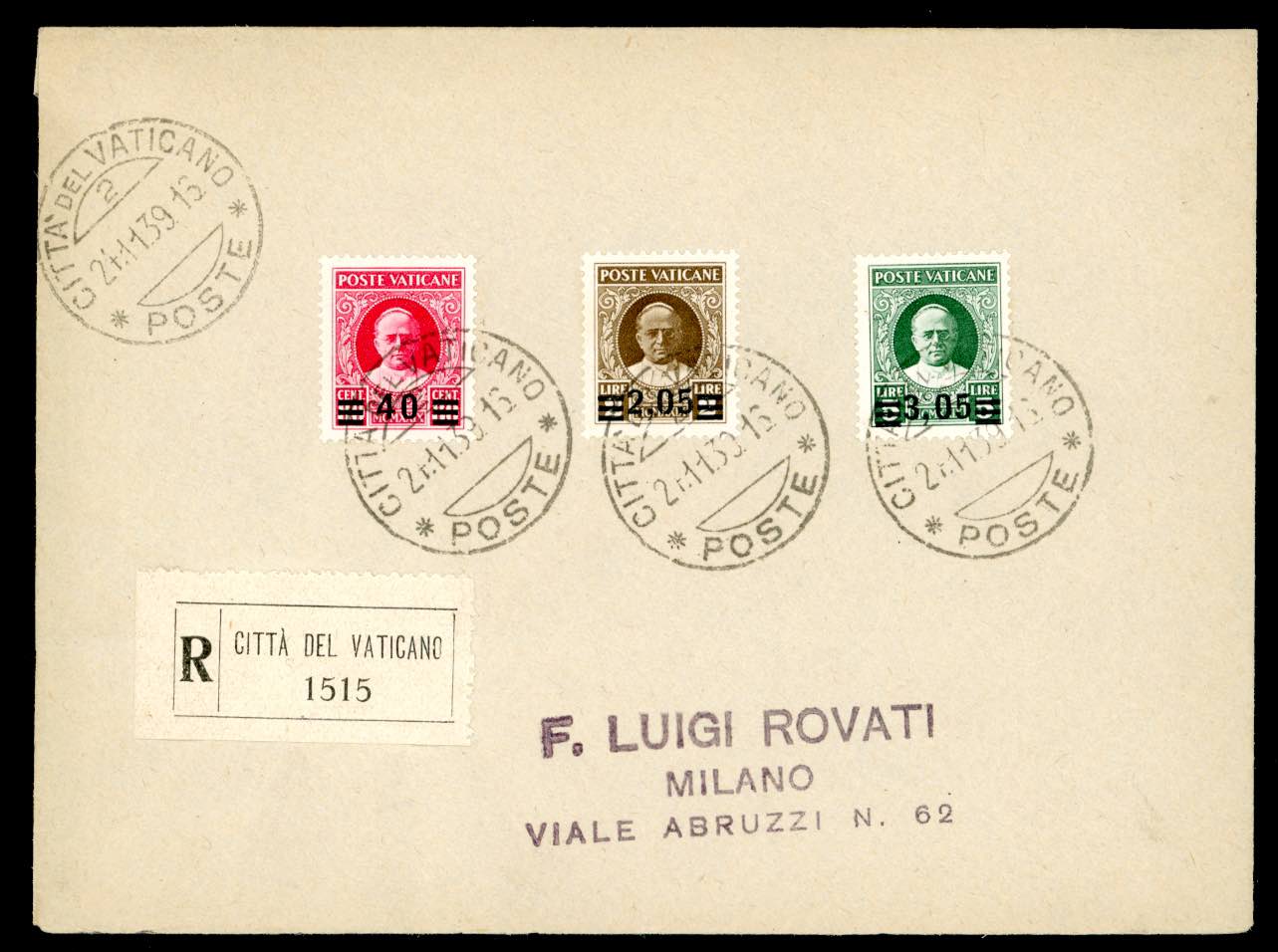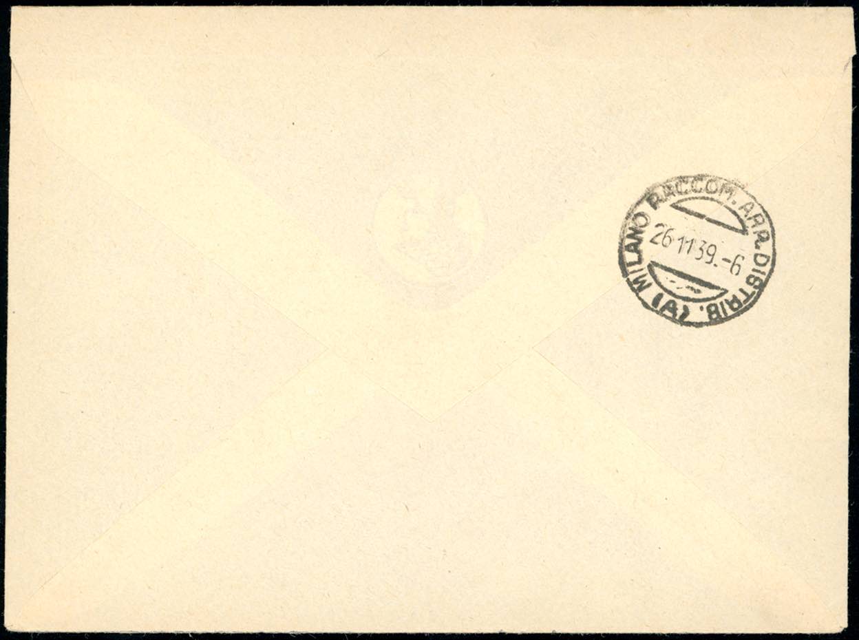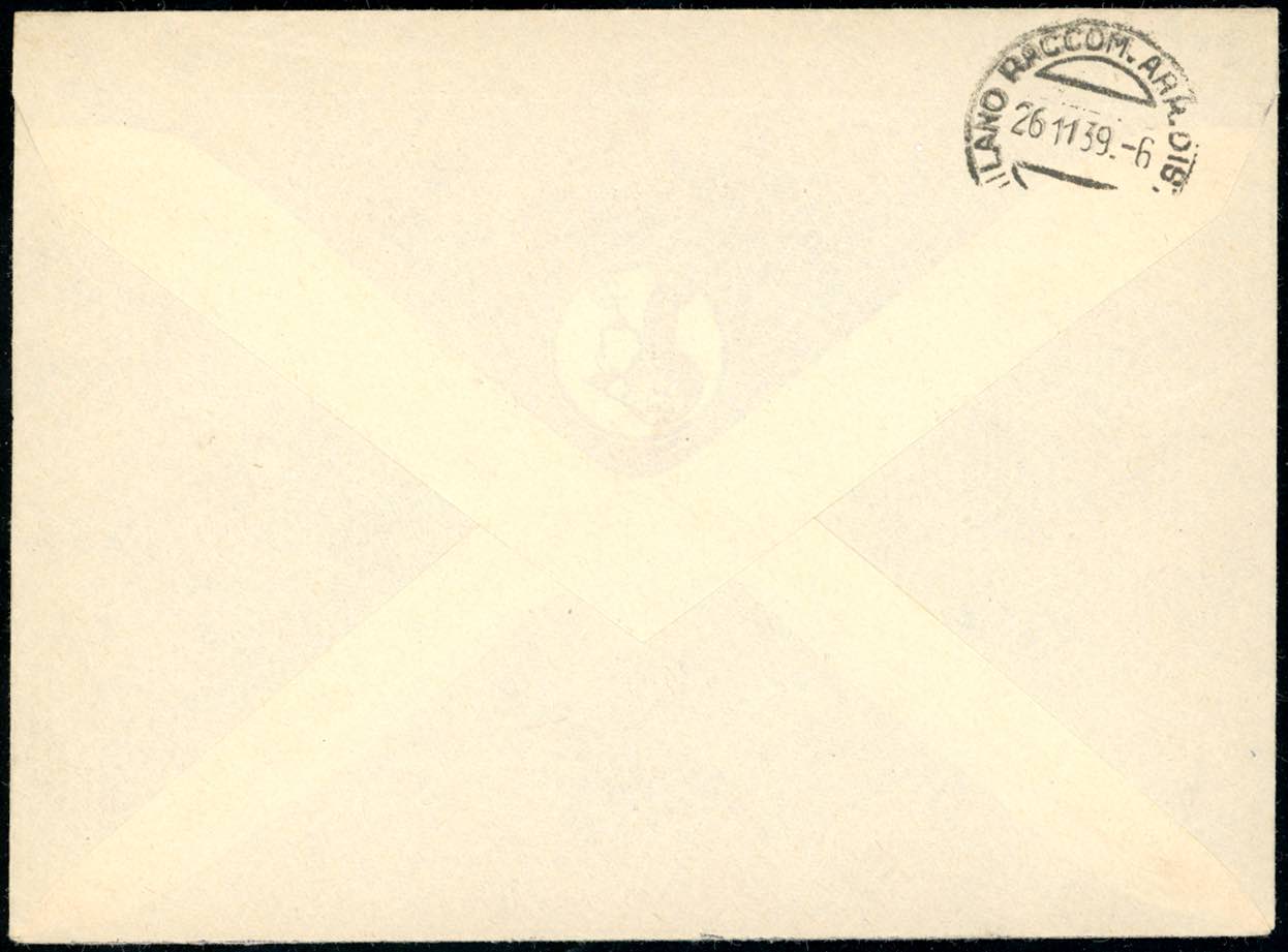 1939 - Provvisoria, serie completa (35/40), perfetti, su due buste raccomandate da Città del Vaticano 24/11/1939 a Milano, bollo di arrivo.
