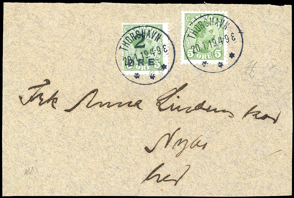 Lot 2178 - FAROER 1919 - 2 o. su 5 o. soprastampato, in affrancatura ...
