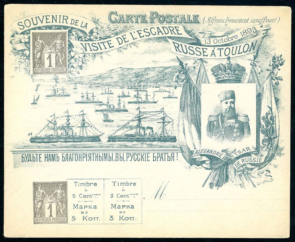 FRANCIA 1893 - Cartolina ricordo della visita della squadra russa a Tolone del 13/10/1893, nuova.