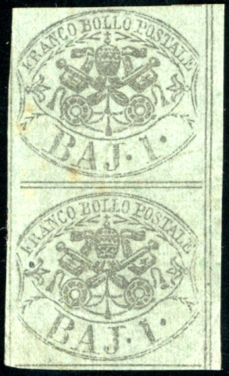 Lot 344 - 1854 - 1 baj verde grigiastro, coppia verticale, stampa con ...