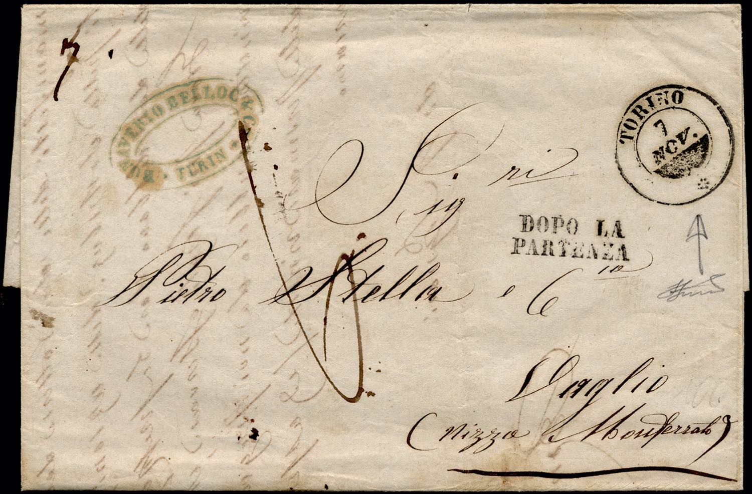 TORINO, doppio cerchio rosetta, senza anno, non catalogato - Lettera completa di testo del 7/11/1850 per Vaglio, bollo d'arrivo. Molto ... Read more