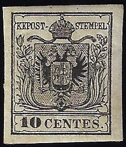 1857 - 10 cent. nero, carta a macchina (19), nuovo, gomma originale, perfetto. Splendido per freschezza e marginatura. Molto raro di questa qualità. Emilio Diena, cert. E.Diena 1992.