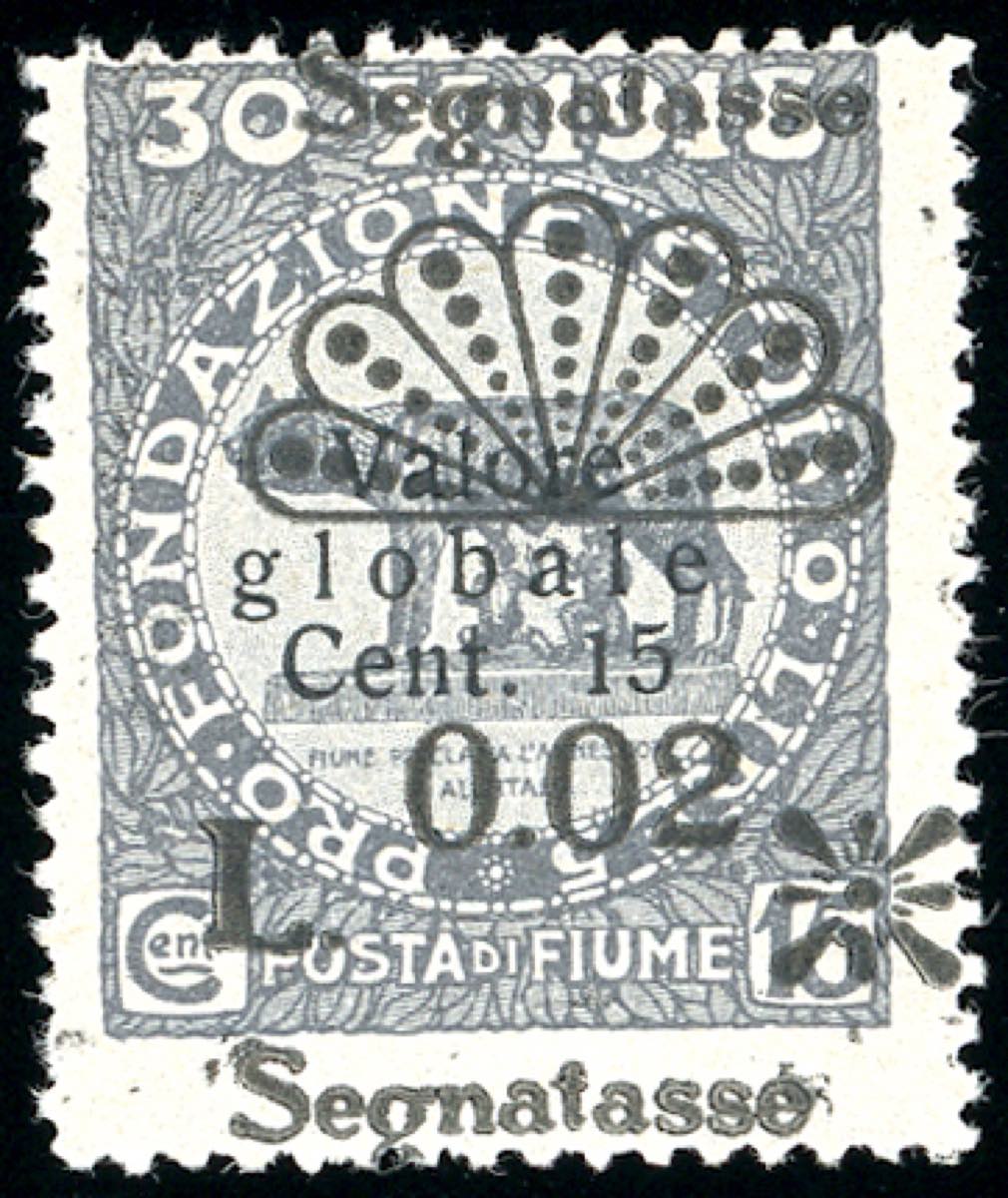 Lot 1621 - FIUME SEGNATASSE 1921 - 0,02 l. su 15 cent., soprastampa ...