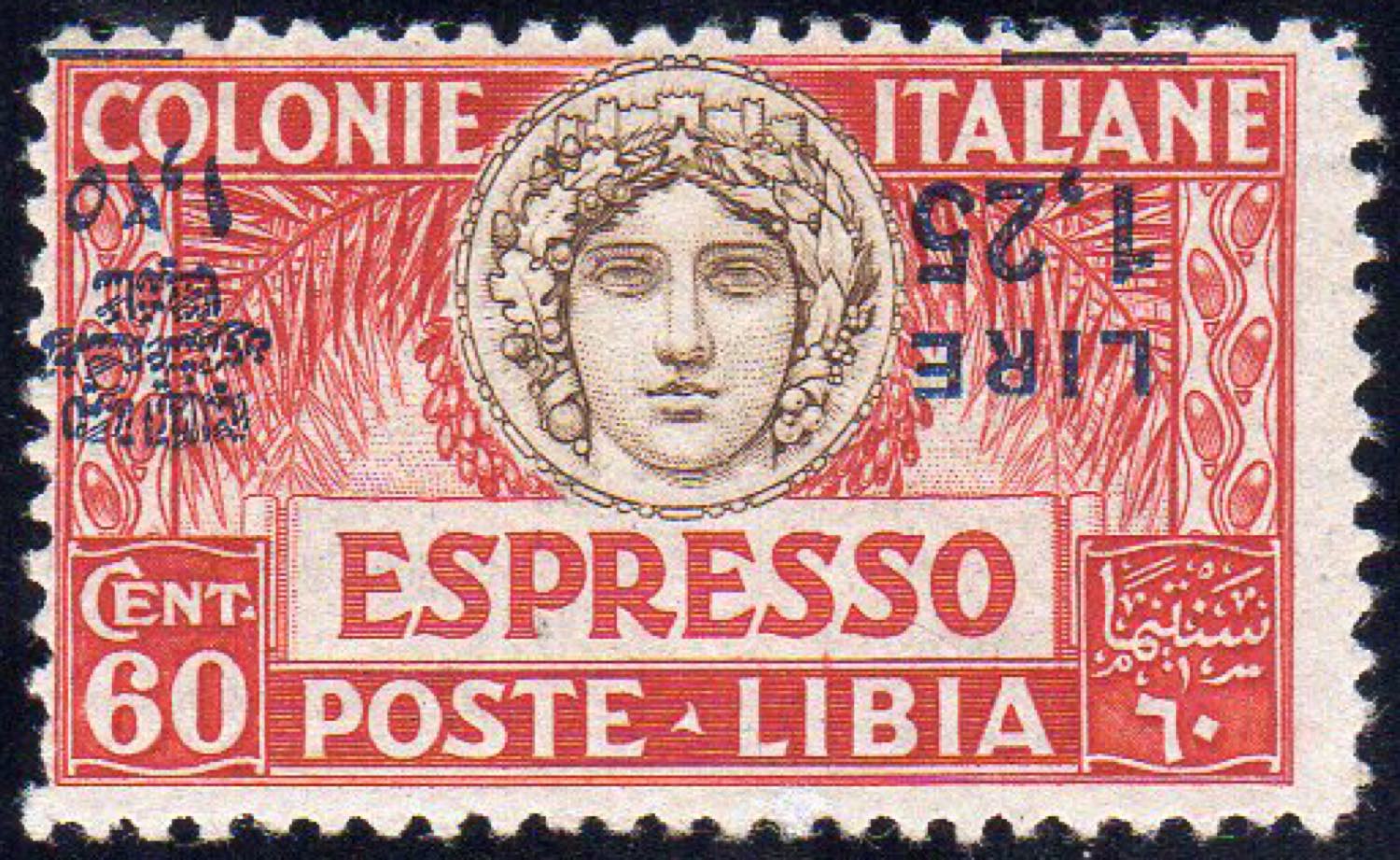 ESPRESSI 1927 - 1,25 lire su 60 cent., soprastampa capovolta e fortemente spostata a destra, senza sbarrette in alto (12ba), gomma ... Read more