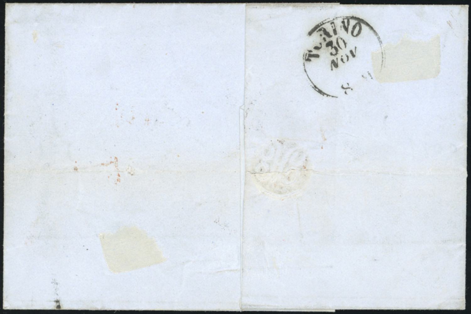 FRANCIA 1861 - 40 cent. dent. 7 1/4 x 7 Susse (16k), perfetto su lettera senza testo da Parigi 28/11/1861 a Torino. Sorani.