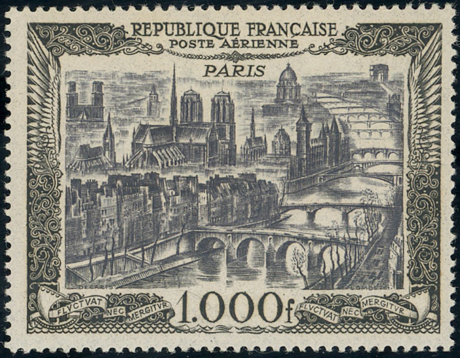FRANCIA POSTA AEREA 1950 - 1.000 fr. Veduta di Parigi (A29), gomma integra, perfetto.