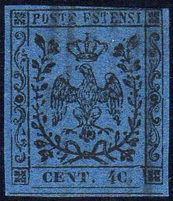 Lot 141 - 1854 - 40 cent. azzurro scuro, punto dopo le cifre, errore ...