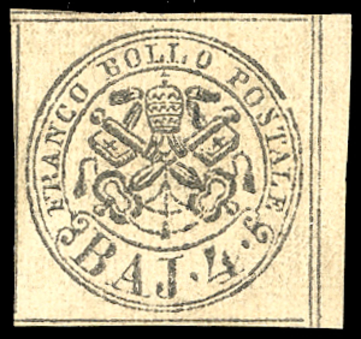 1854 - 4 baj bruno grigio chiaro (5b), bordo di foglio, nuovo senza gomma, perfetto e con ottimi margini. Raro e di ottima qualità. Em.Diena e cert. Manzoni.