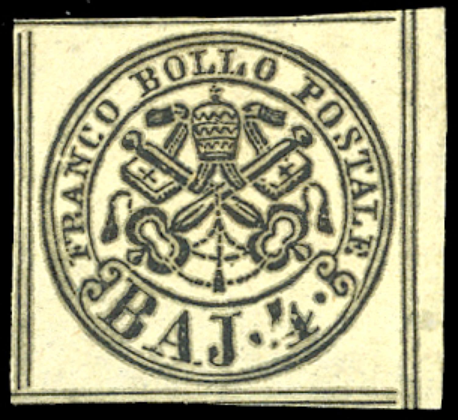 Lot 560 - 1858 - 4 baj giallo chiaro (5Ab), decalco al verso, gomma ...