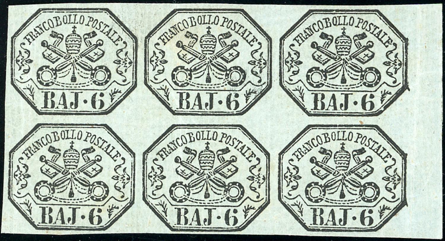Lot 572 - 1852 - 6 baj grigio verdastro (7), blocco di sei, bordo di ...