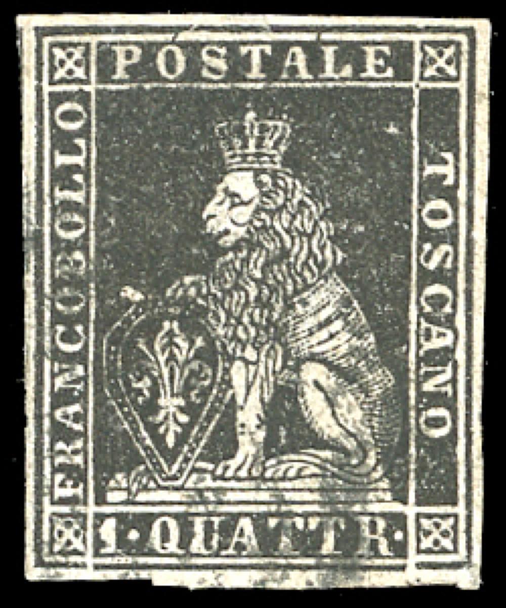 1857 - 1 quattrino nero (10), perfetto e ben marginato, usato. Bello. E.Diena, Ferrario.