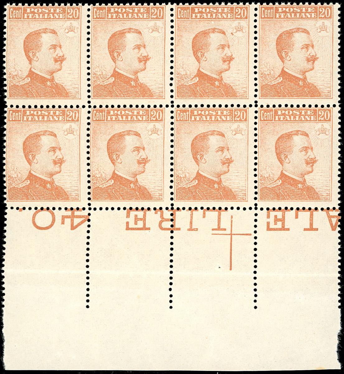 Lot 1326 - 1916 - 20 cent. Michetti, senza filigrana (107), blocco di ...