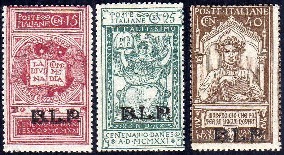 Lot 486 - 1922 - Dante, soprastampati BLP, non emessi (19/21), gomma ...