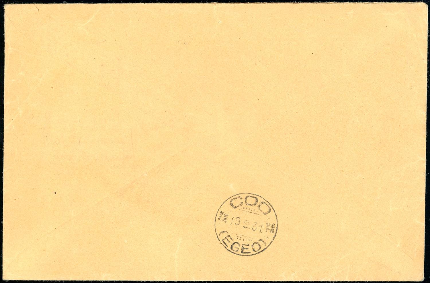 1931 - Congresso Eucaristico, serie completa (30/36), perfetti, su busta da Rodi 17/9/1931 a Coo, bollo di arrivo. Ferrario.