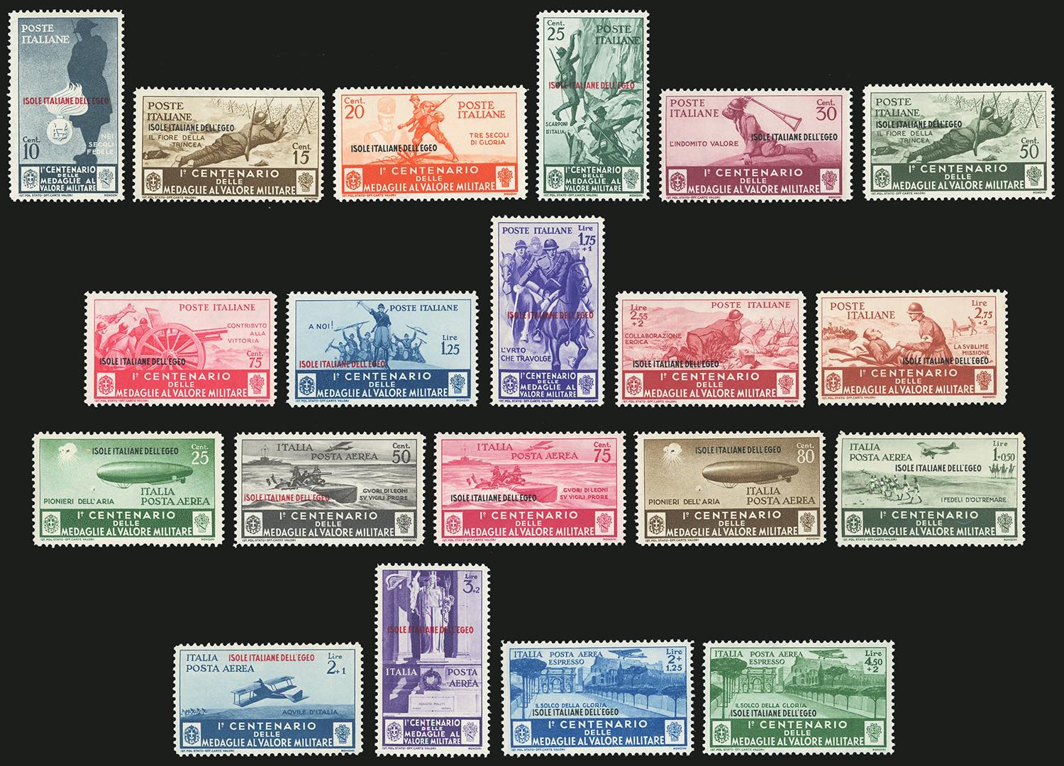 1934 - Medaglie al valore, serie completa (80/90+A), gomma originale integra, perfetti. Molto freschi. Alcuni valori Raybaudi/Caffaz.