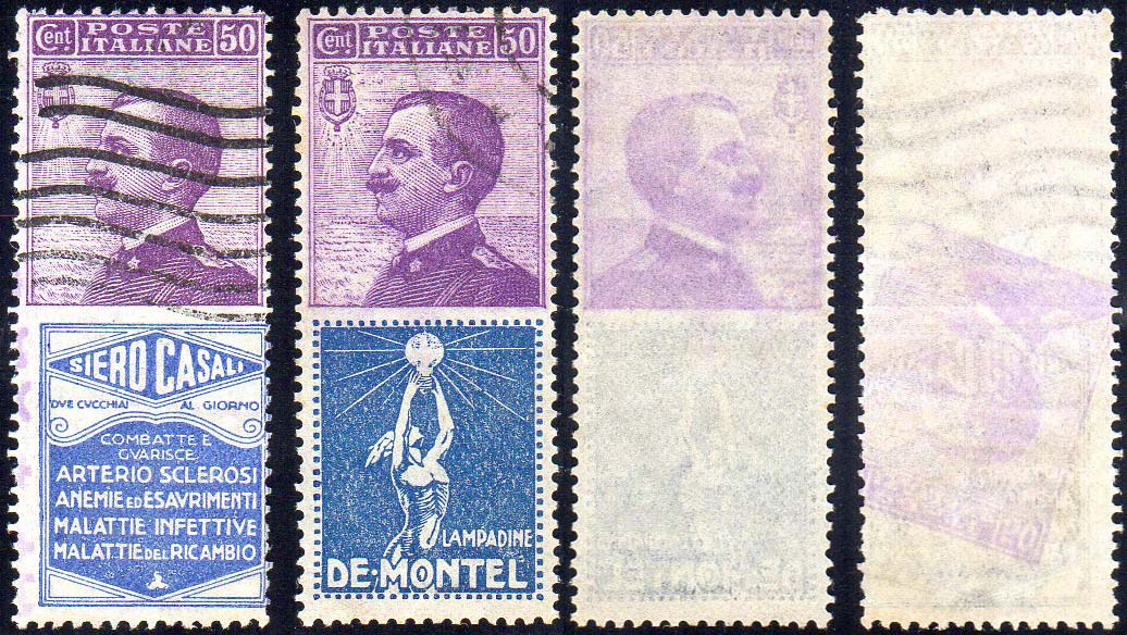 1924 - 50 cent. De Montel e Siero Casali, decalco del francobollo, di cui uno capovolto e uno obliquo (12,15), usati, perfetti. Belli e non ... Read more