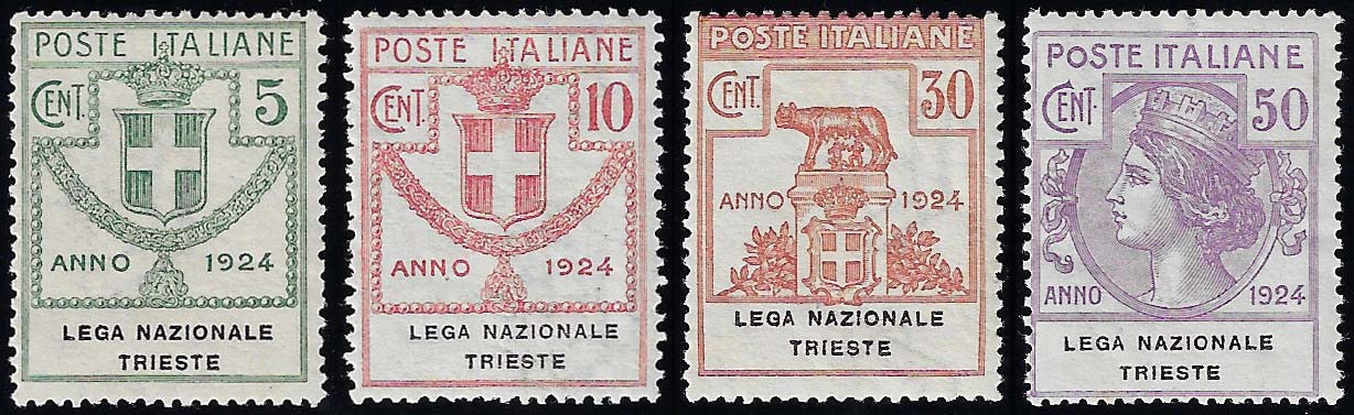 LEGA NAZIONALE TRIESTE 1924 - Serie completa (42/45), gomma integra, perfetti. Molto freschi.