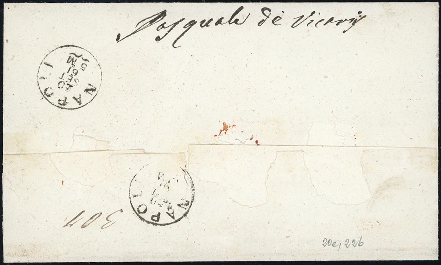 ARIANO ASSICURATA, punti R3 - 2 grana, 10 grana (20e,22b), entrambi con un margine leggermente intaccato, su sovracoperta di lettera del 19/9/1861 a Napoli, con il lineare "assicurato" come annullatore. Insieme inedito e probabilmente unico! Chiavarello.