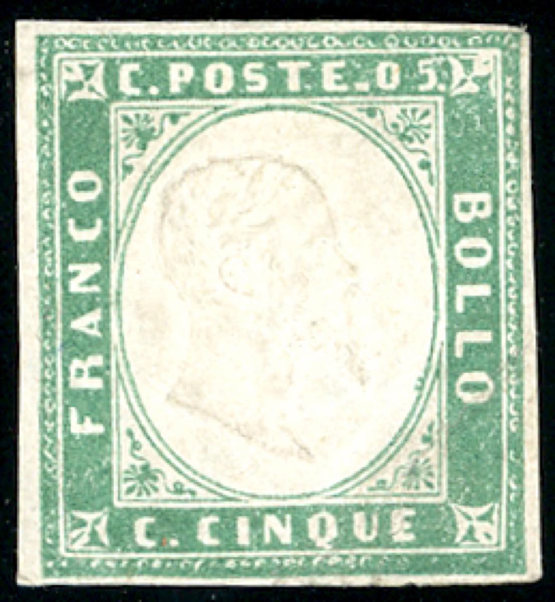 Lot 639 - 1855 - 5 cent. verde smeraldo (13d), gomma originale ...