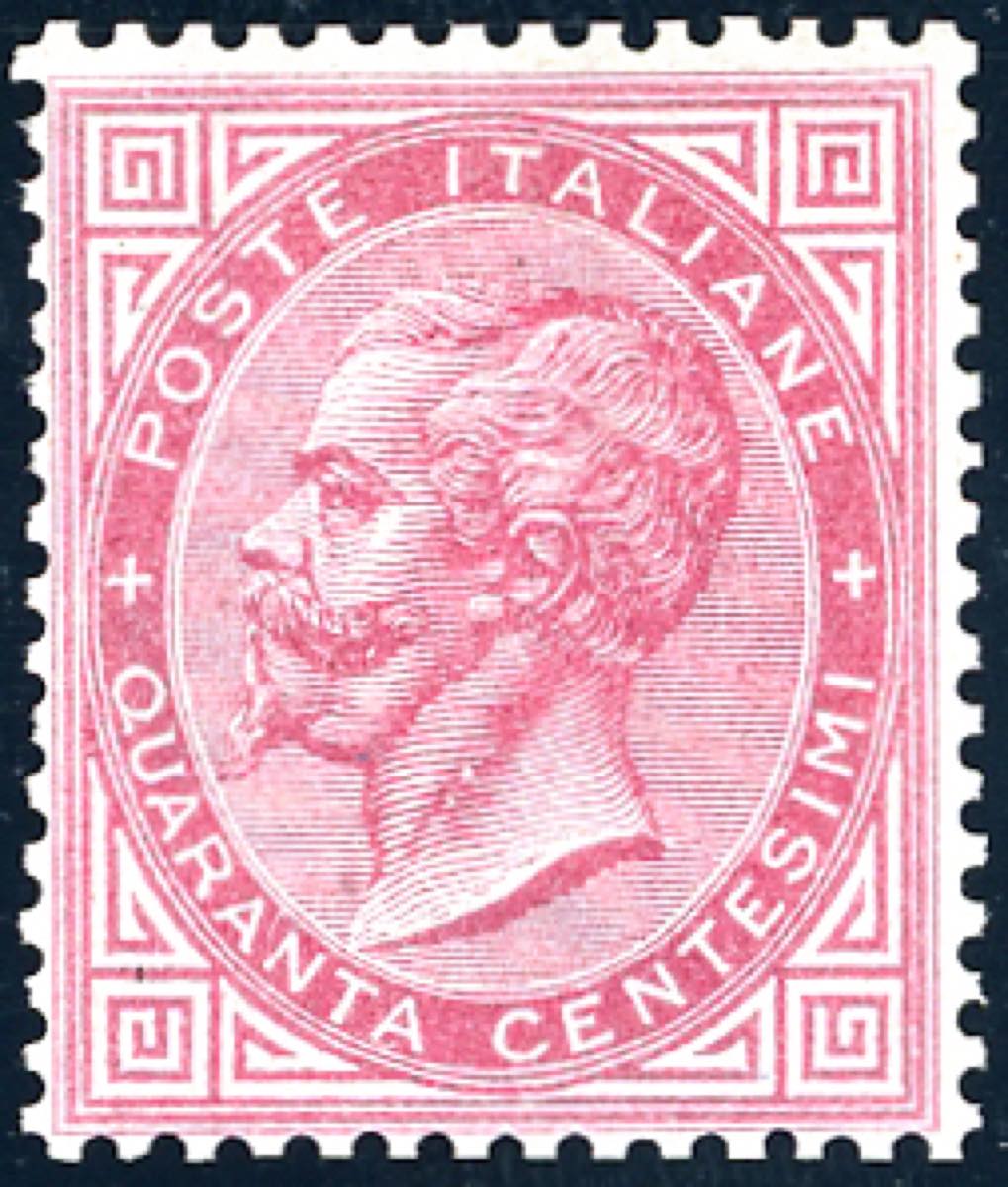 1866 - 40 cent. rosso carminio, De La Rue, tiratura di Torino (T20), nuovo, gomma originale integra, perfetto. Esemplare di grande freschezza ed in ottimo stato di conservazione, presenta buona/ottima centratura. Cert. E.Diena ed Enzo Diena. (Cat.Sassone € 26.000/60.000).