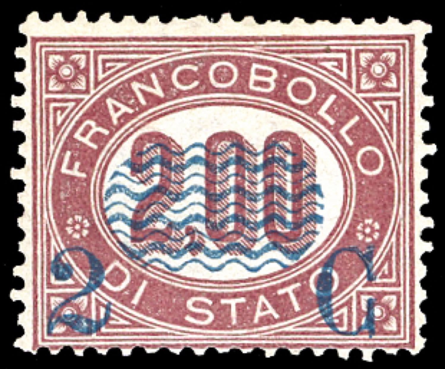1878 - 2 cent. su 2 lire Servizio soprastampati (34), buona centratura, gomma originale, perfetto, molto fresco. A.Diena, cert. E.Diena.