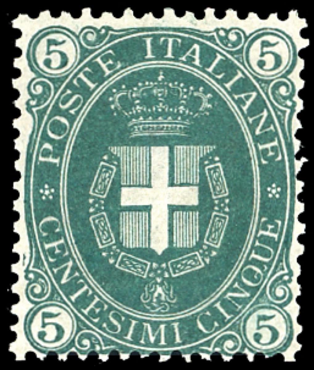 1889 - 5 cent. Stemma, fondo pieno (44), buona centratura, gomma originale integra, perfetto. E.Diena, cert. Diena.