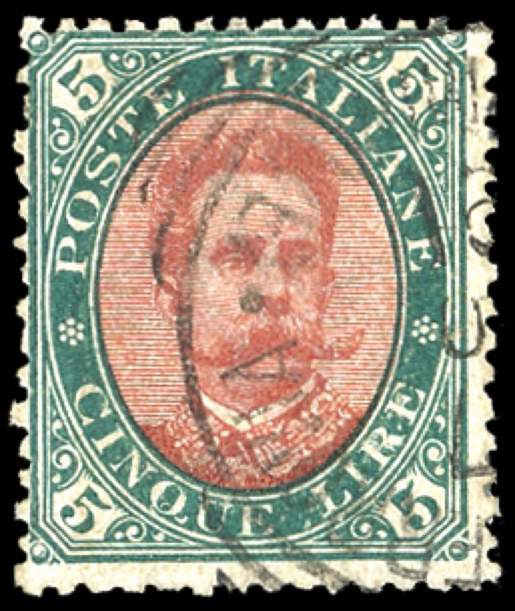 Lot 959 - 1889 - 5 lire verde e carminio Umberto I (49), usato, ...