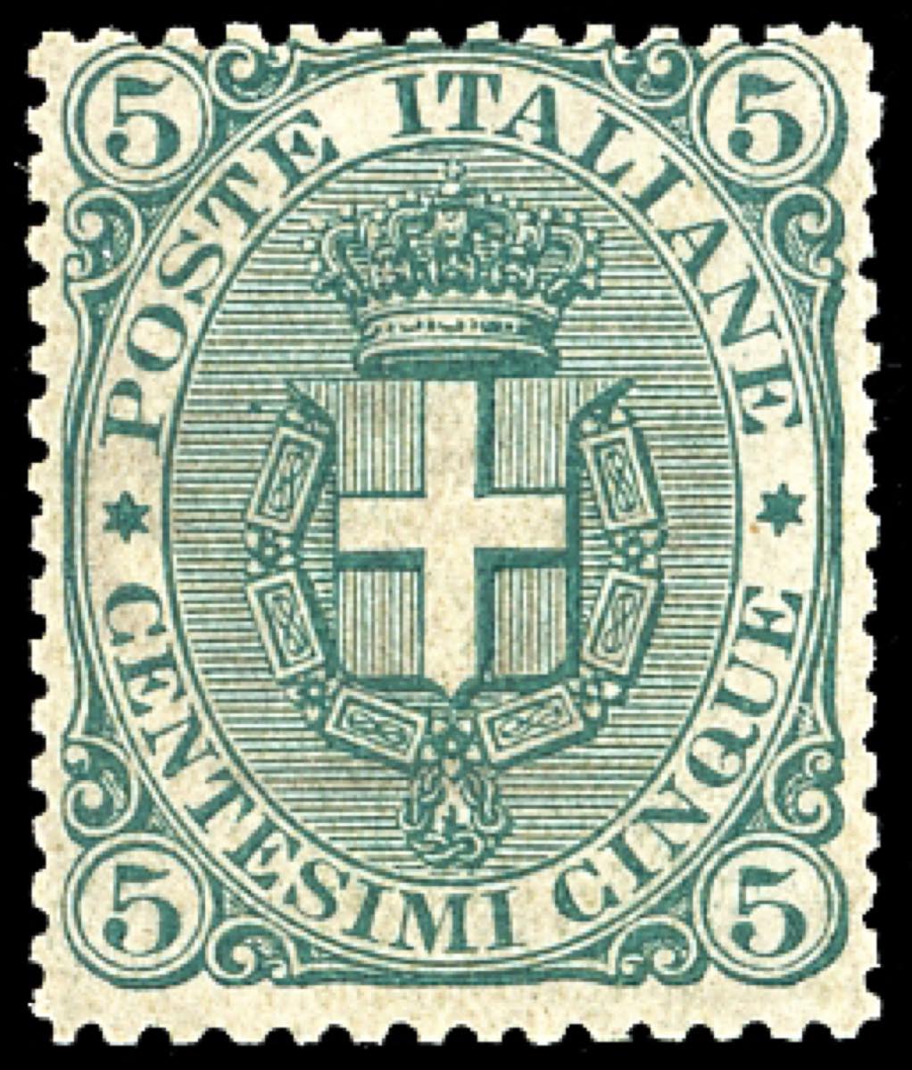 Lot 967 - 1891 - 5 cent. Stemma, fondo rigato (59), buona centratura, ...