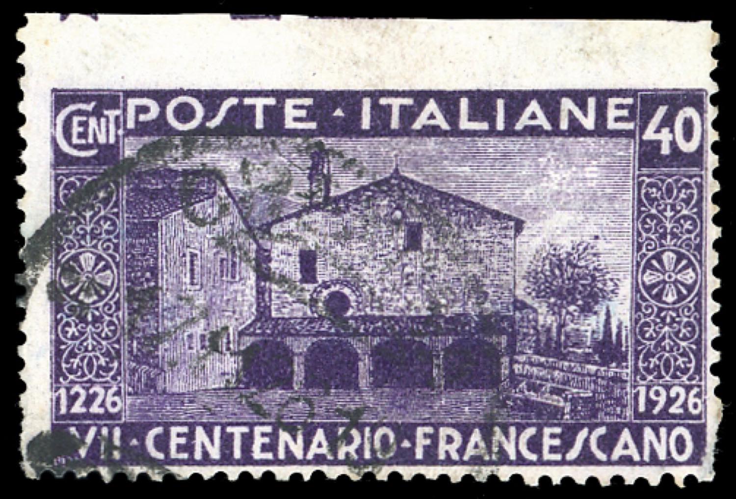 1926 - 40 cent. S.Francesco (194), non dentellato in alto, bordo di foglio, usato, lieve difetto di dentellatura in basso a destra. Rara ... Read more