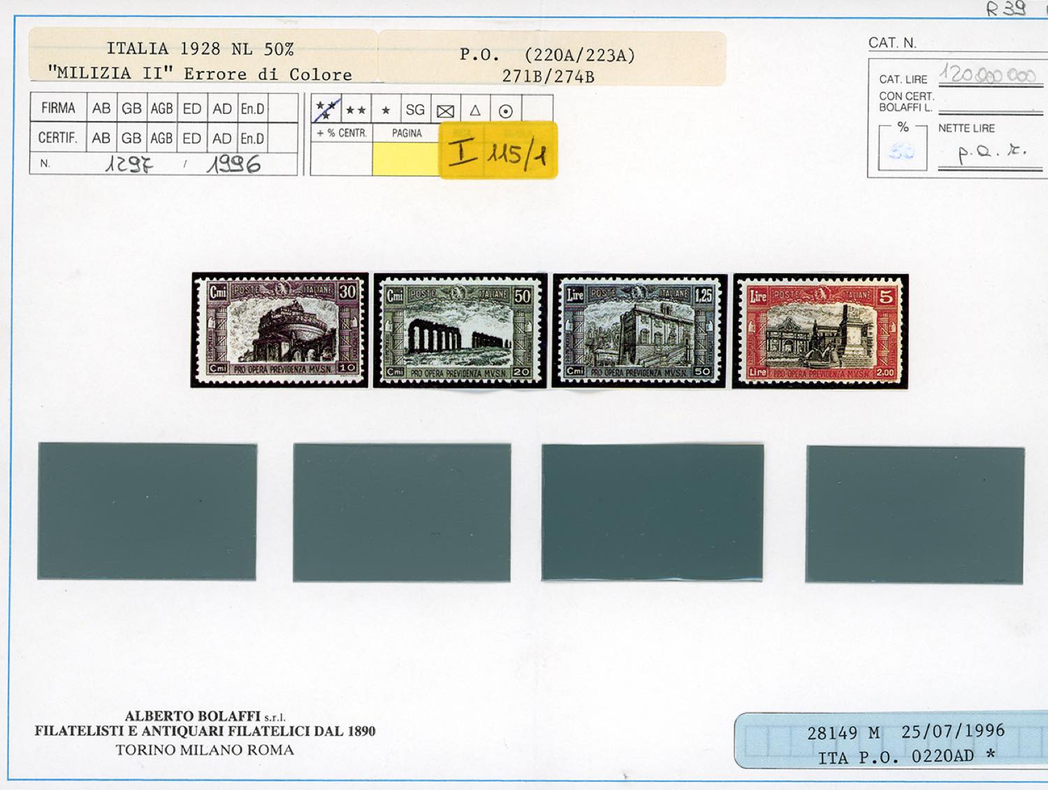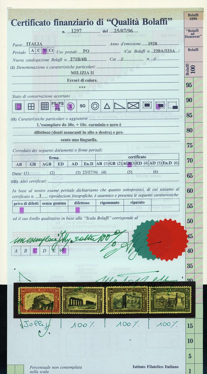 Lot 1043 - 1928 - Milizia, II emissione, ERRORE DI COLORE, serie ...