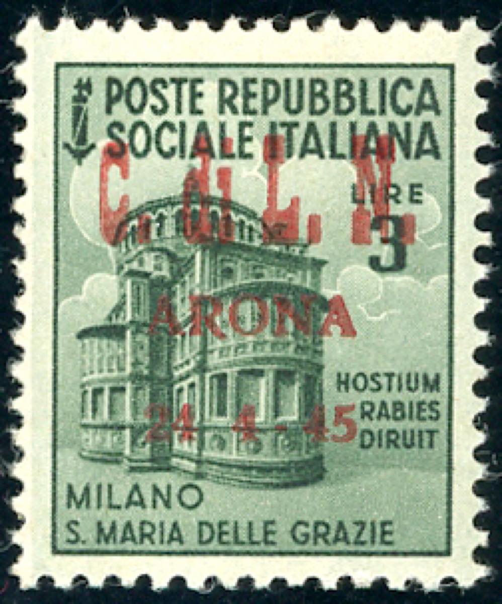 Lot 1516 - ARONA 1945 - 3 lire soprastampato in carminio, senza ...