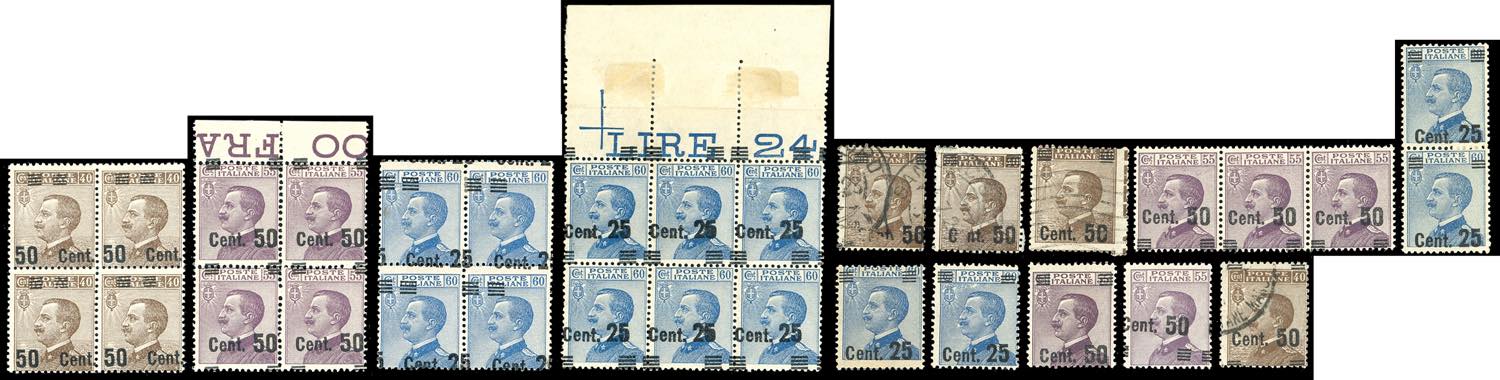 REGNO D'ITALIA 1923/1925 - Michetti soprastampati, splendido insieme di 31 esemplari con varietà, catalogate e non.