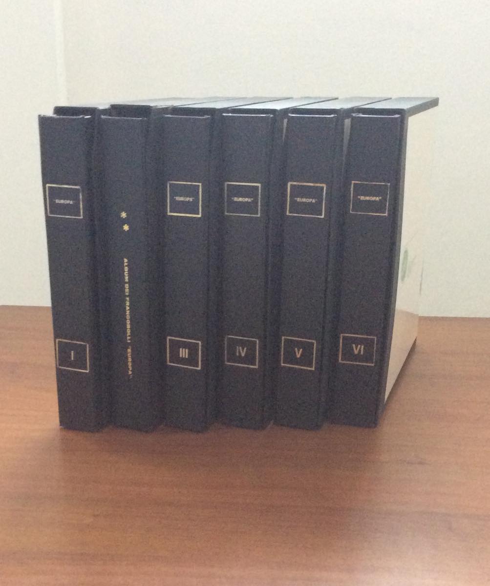 EUROPA CEPT 1956/1984 - Collezione completa di tutti i francobolli e tutti i foglietti nuovi, con gomma integra, in sei eleganti album Bolaffi, in uno scatolone. Notato il raro foglietto di Liechtenstein, perfetto. Ottima qualità.