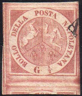 1859 - 1/2 grano carminio, II tavola (2), usato, perfetto. Splendido! Ferrario, fotocopia cert. Diena.