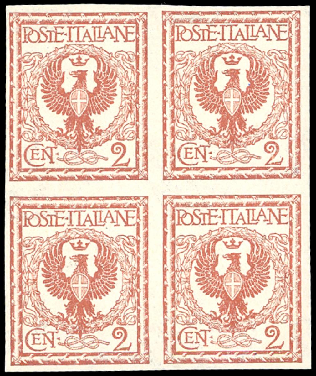 Lot 1000 - 1901 - 2 cent. Floreale, non dentellato (69g), blocco di ...