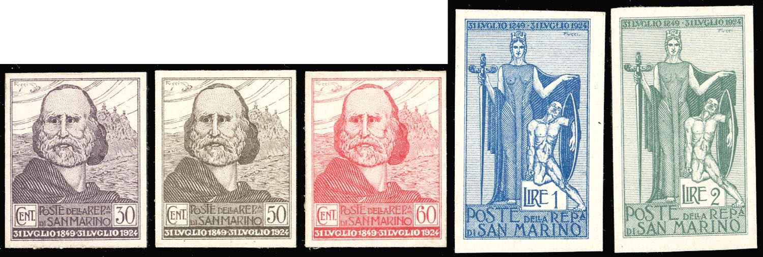 Lot 2123 - 1924 - Garibaldi, serie completa, prove di conio nei valori ...