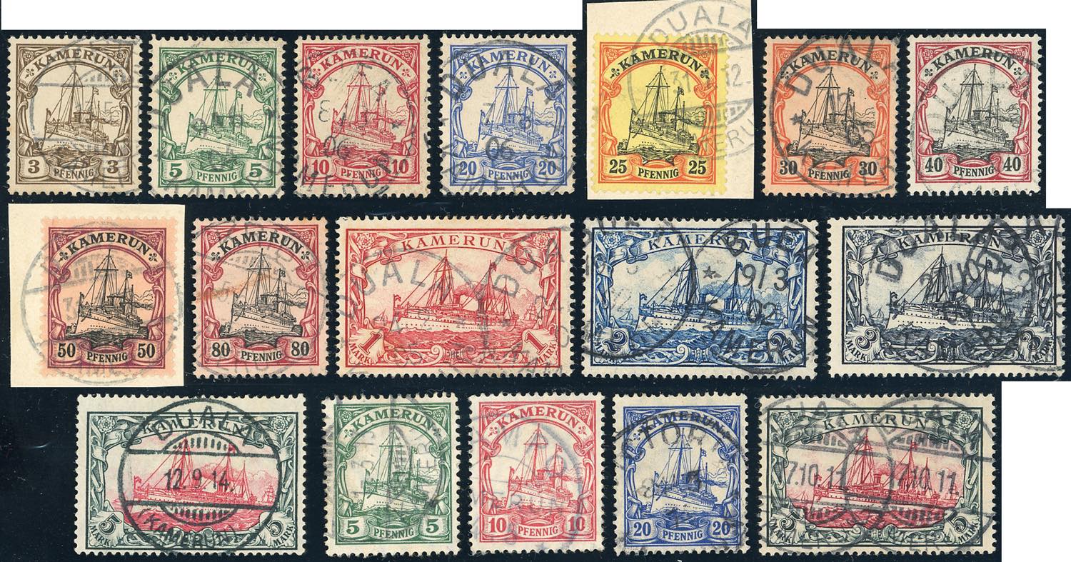 COLONIE TEDESCHE CAMEROUN 1900/1915 - Ordinaria, senza e con filigrana, 17 valori (Michel 7/19,20/25), usati, perfetti.