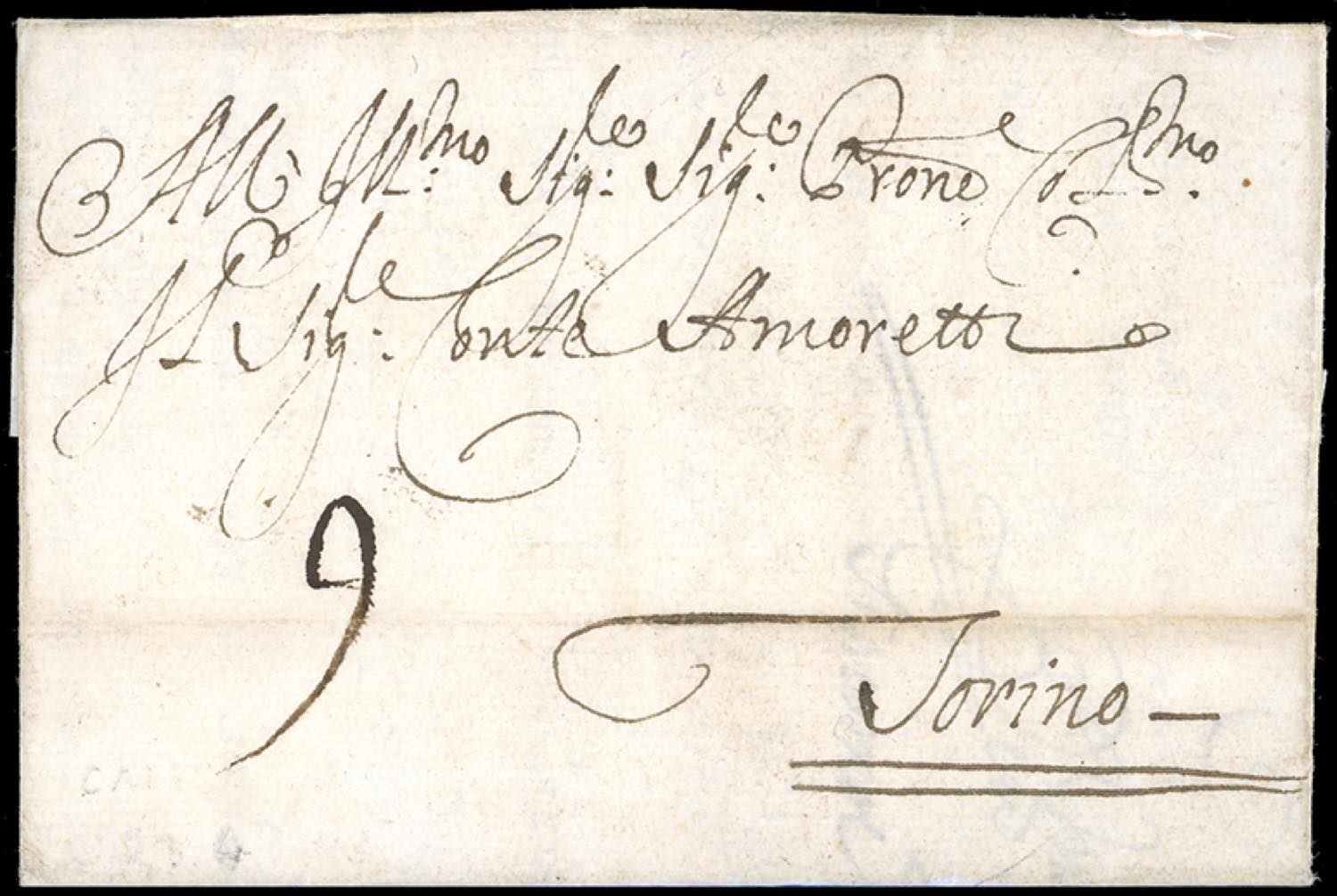 SARDEGNA-SPAGNA 1703 - Lettera prefilatelica da Cadice 25/8/1703 a Torino, con segno di tassa sul fronte. Non comune e molto bella. Ex coll. Hess.