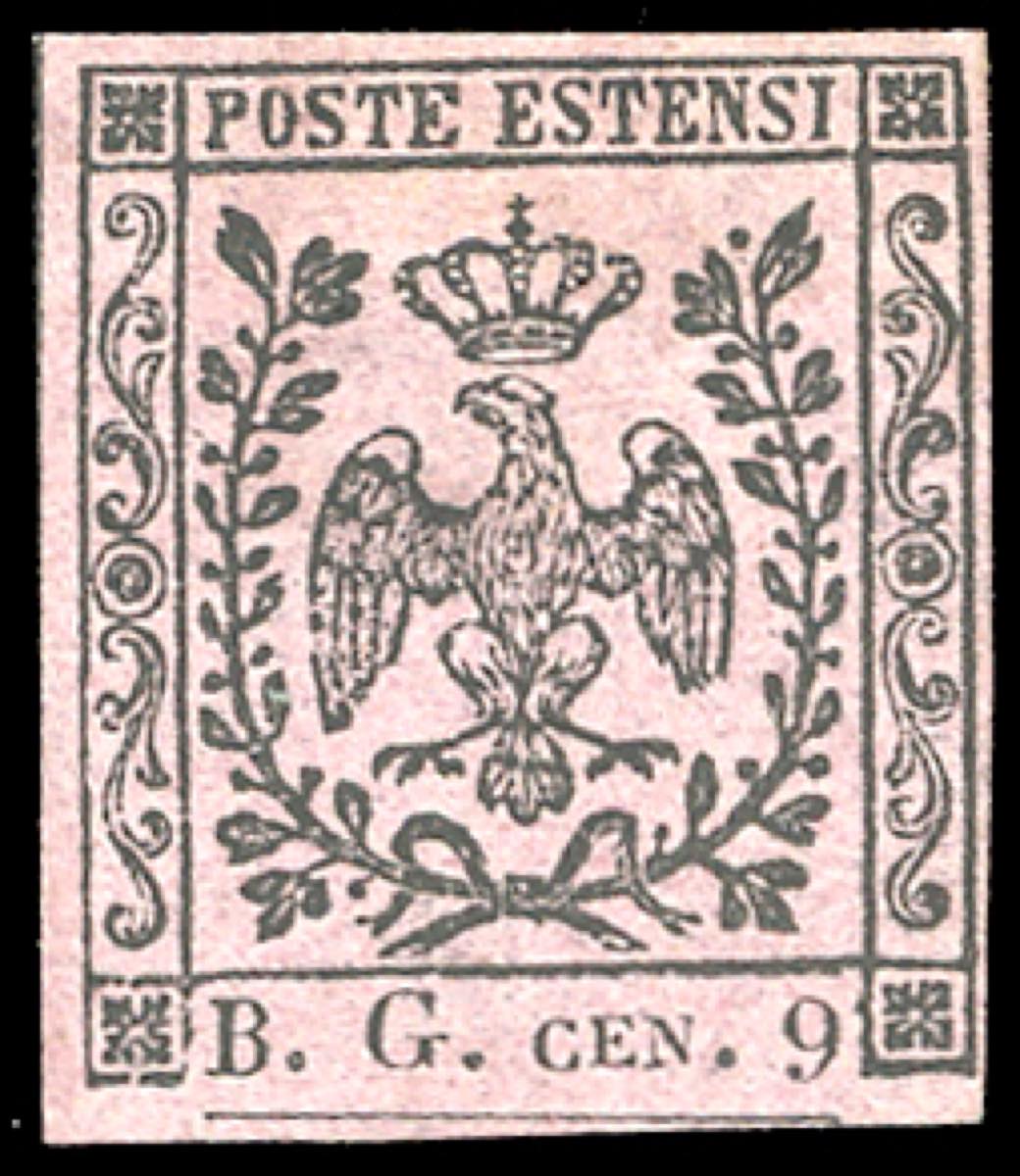 1853 - 9 cent. violetto grigio, lettere B.G. grandi (1), nuovo, senza gomma come sempre, perfetto. Molto bello e grande rarità allo stato di nuovo. Cert. A.Diena e Ferrario.