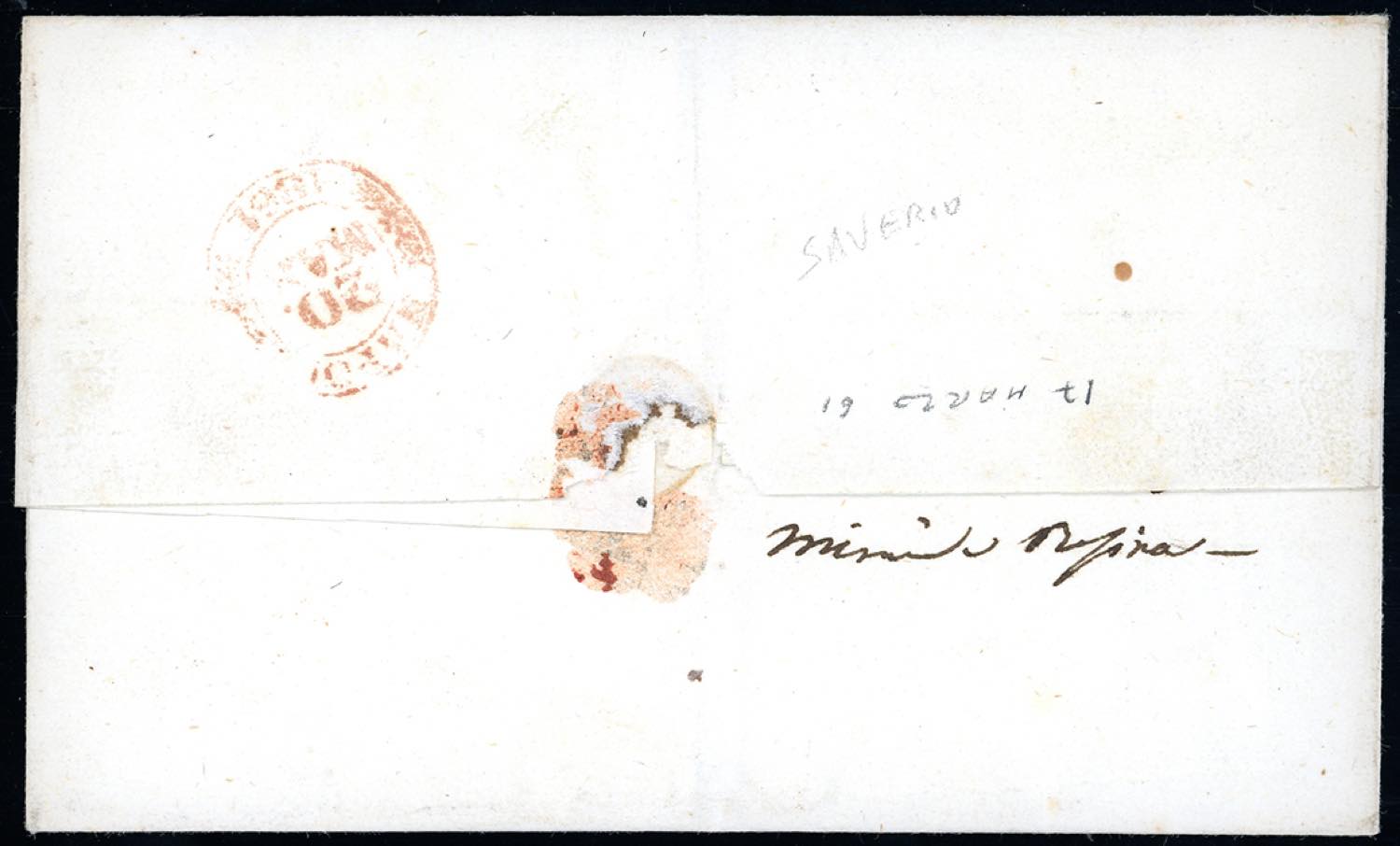 1861 - 2 grana azzurro (20b), coppia verticale, tagliata irregolarmente, su lettera da Cosenza 17 marzo 1861, annullo a svolazzo (punti ... Read more