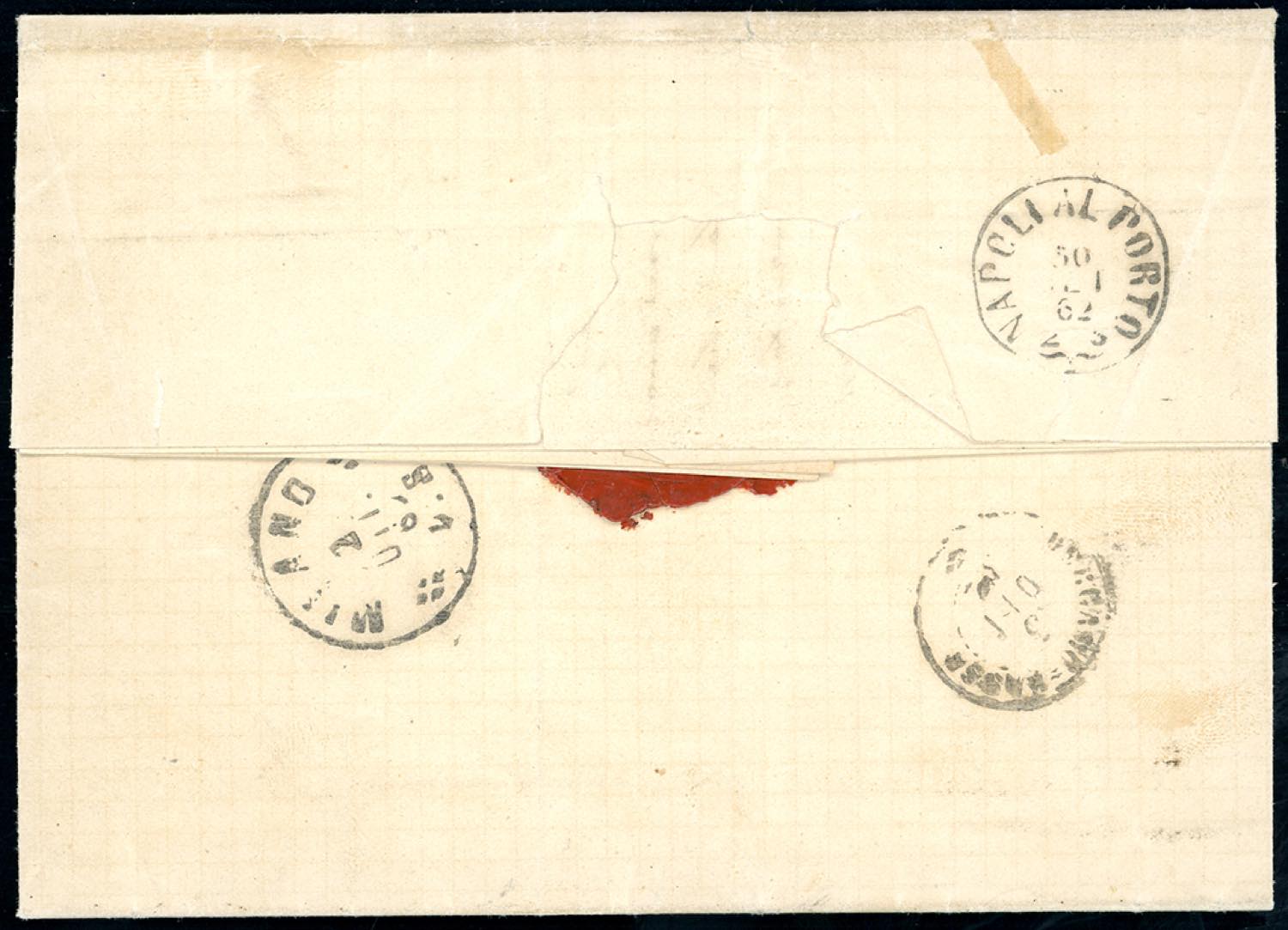 1862 - 10 grana arancio (22), ottimi margini, impercettibile lieve piega verticale, su lettera da Napoli 30/9/1862 a Bergamo. Rara lettera ... Read more