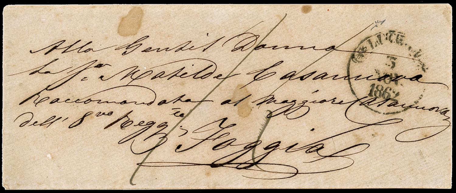 Lot 406 - 1862 - Busta non affrancata da Lucera 3/11/1862 a Foggia, ...