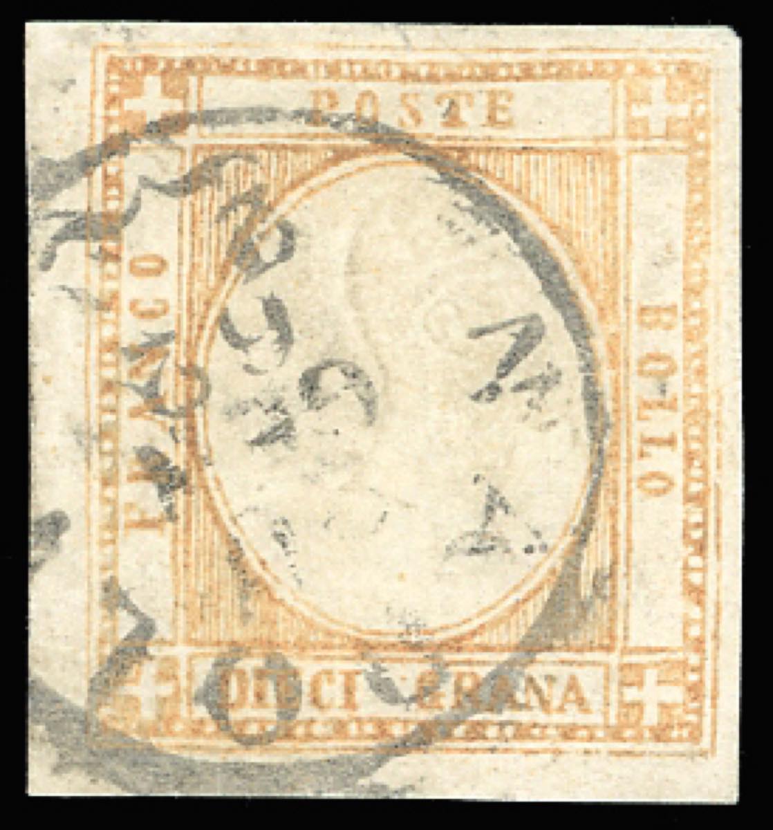 Lot 423 - 1861 - 10 grana giallo arancio, falso per posta, II tipo, ...
