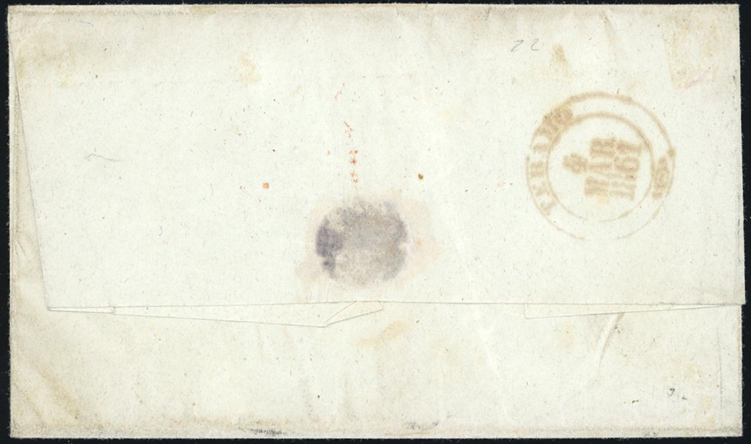 1861 - 1 grano rosa carminio, II tavola (4), in affrancatura mista con 1 grano nero intenso (19c), perfetti, su sovracoperta di lettera da L'Aquila 2/3/1861 a Teramo. Bella e rara mista di valori gemelli! Cert. E.Diena e Colla.