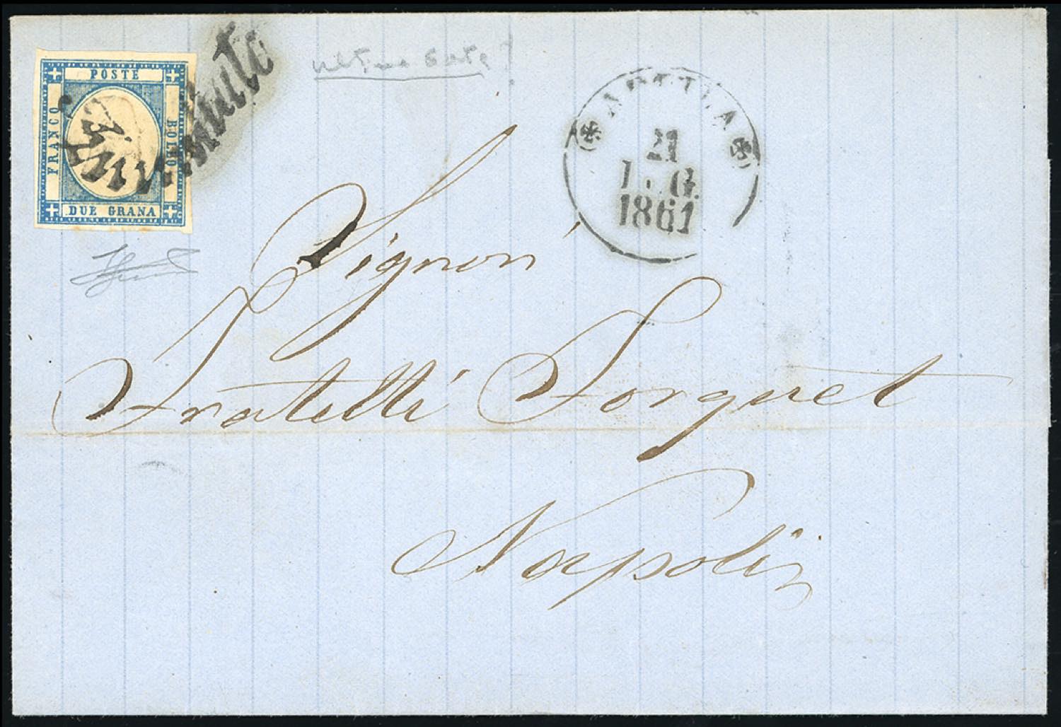 AQUILA, svolazzo + cerchio punti 10 - 2 grana (20), perfetto, su lettera del 21/7/1861 per Napoli. Bella. Ferrario.