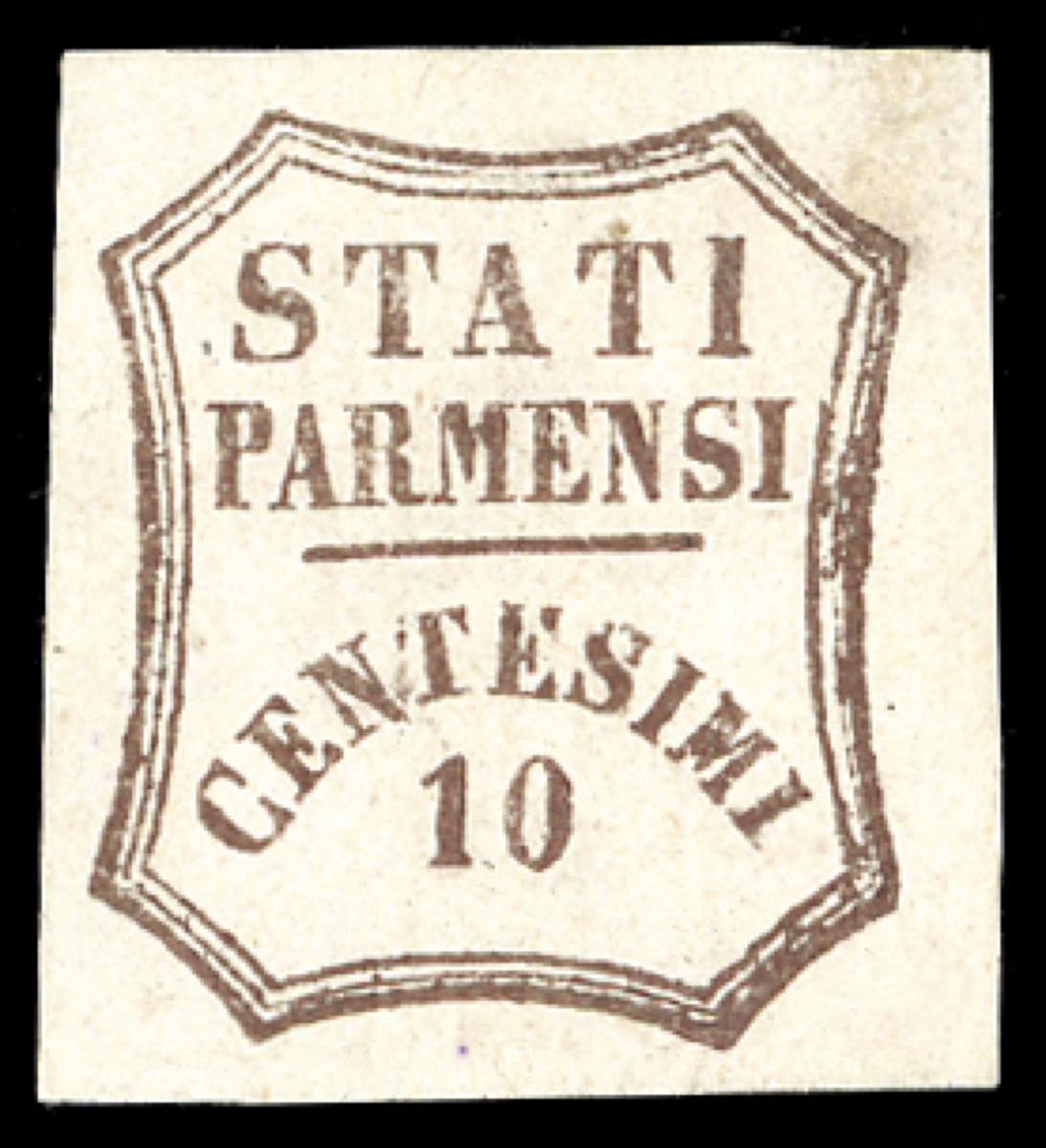 1859 - 10 cent. bruno (14), gomma originale, perfetto e con grandi margini. A.Diena, cert. Sismondo.