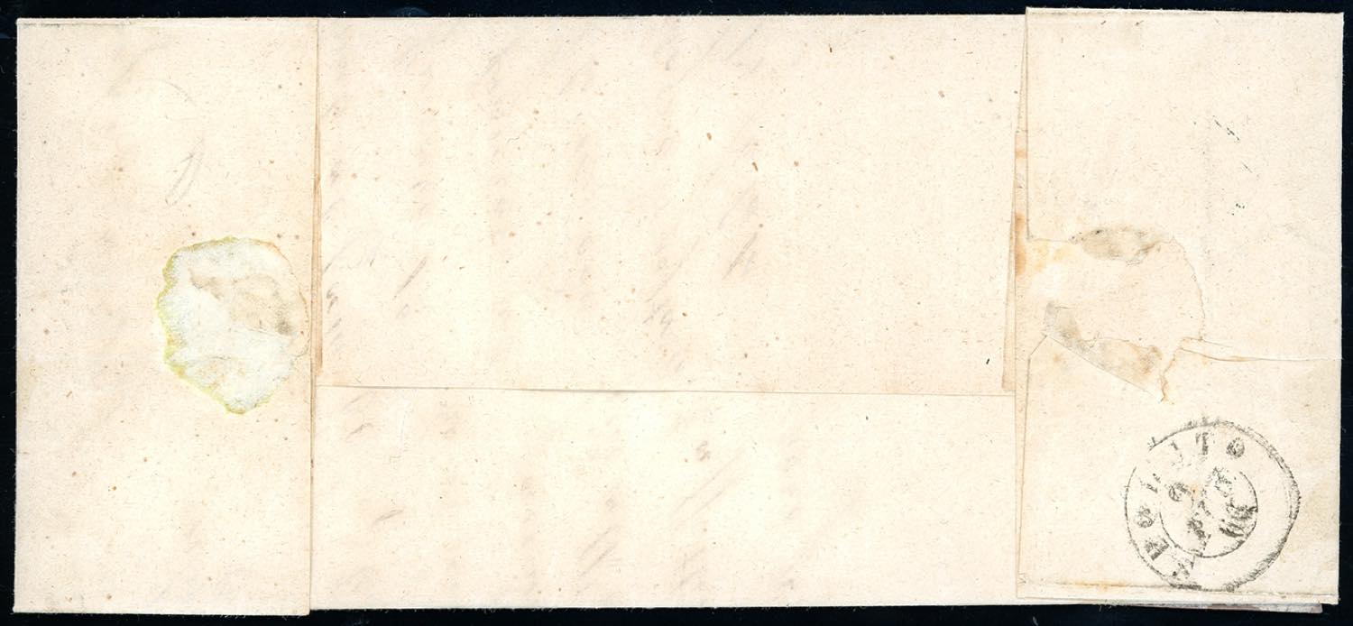 1866 - 1/2 baj violetto (1Aa), due blocchi di quattro, applicati a cavallo, su lettera contenente "campioni di niun valore" da Roma ... Read more