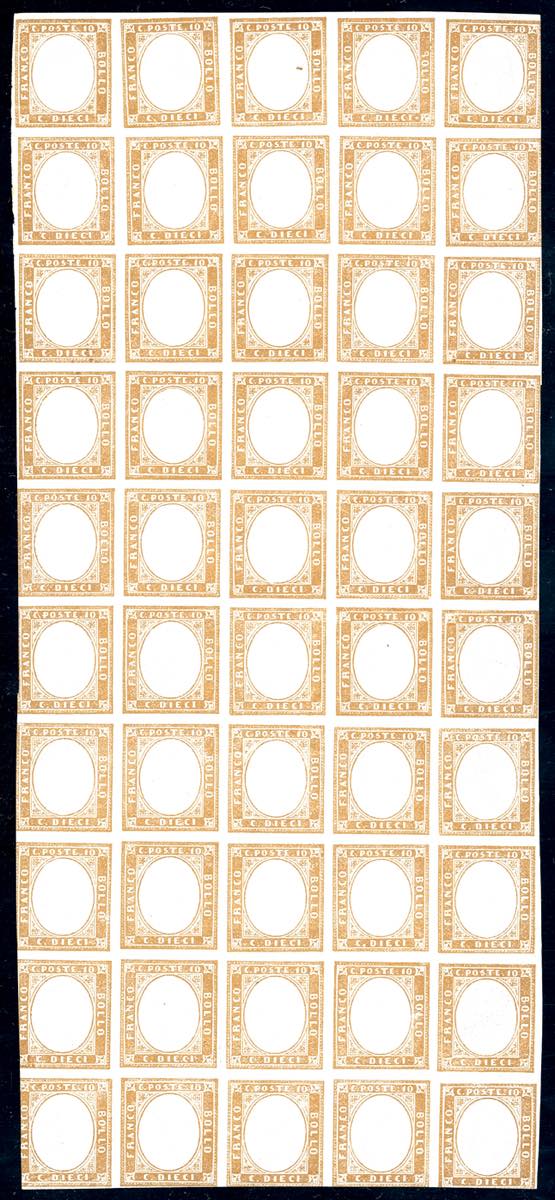 Lot 694 - 1863 - 10 cent. bistro (14E), foglio di 50 esemplari, gomma ...