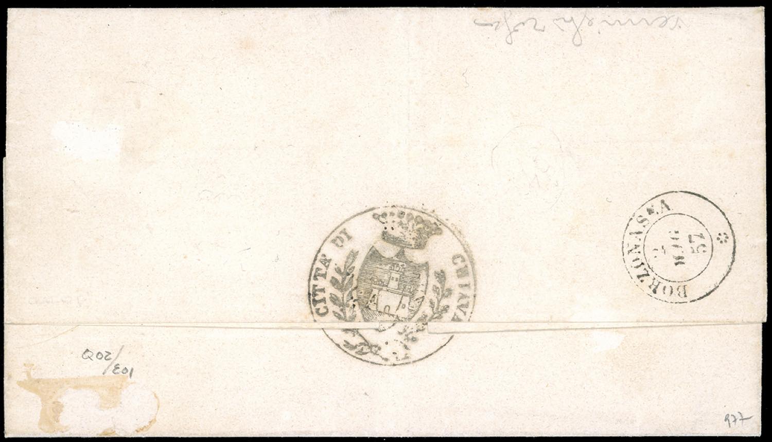 1857 - 40 cent. vermiglio rosa (16c), perfetto, su sovracoperta di lettera da Chiavari 1/5/1857 a Borzonasca. A.Diena, Gaggero, Gazzera.