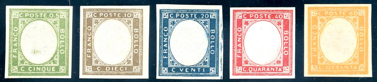 1861 - Non emessi, serie completa (1/5), gomma originale integra, perfetti. Ottima qualità. Ferrario.